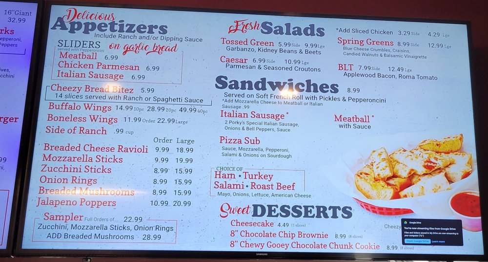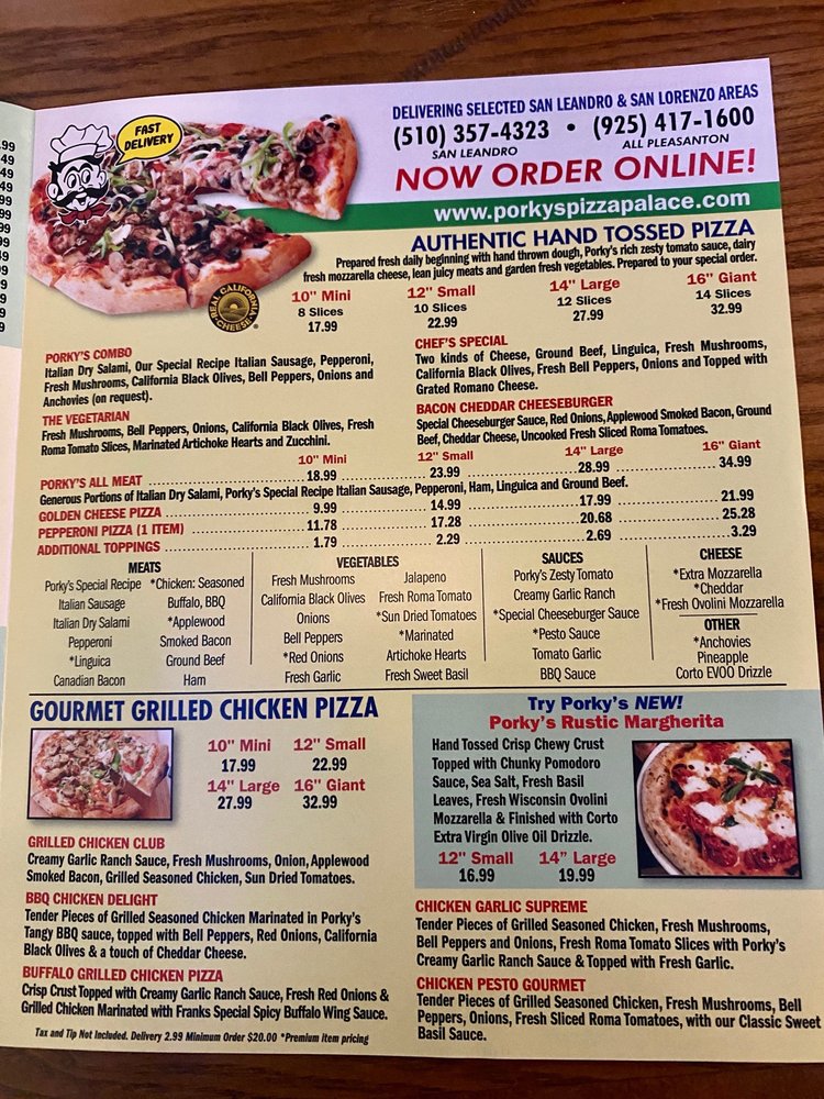 Porky's Pizza Palace Pleasanton Menu (Update 2025)